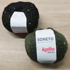 La Katia Soneto es una lana en mecha de alto grosor, envuelta en una hebra lurex con efecto plata que aporta un brillo delicado y original a tus proyectos. Su diseño ondulado y la mezcla de lana, algodón y acrílico brindan un tacto suave y texturas llamativas, ideales para prendas con personalidad.