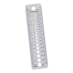 Regla SKC Ideal para medir calibre de lanas hilos y agujas - Largo 15 cm - Orificios para calibres: 2.0- 2.25- 2.50 -2.75- 3.00 -3.25 -3.50 -3.75 -4.00 -4.50 -5.00 -5.50 -6.00 - 6.50 - 7.00 -7.50- 8.00 - 9.00 y 10 mm.